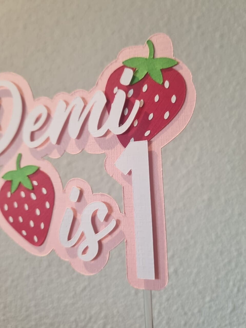 Vier de verjaardag met een extra zoete touch! Onze Aardbei & Naam taarttopper voegt kleur, vrolijkheid en een persoonlijk detail toe aan jouw taart. Met twee schattige aardbeien en een sierlijke roze-witte basis is deze topper perfect voor feestjes met een zomerse of fruitige flair.