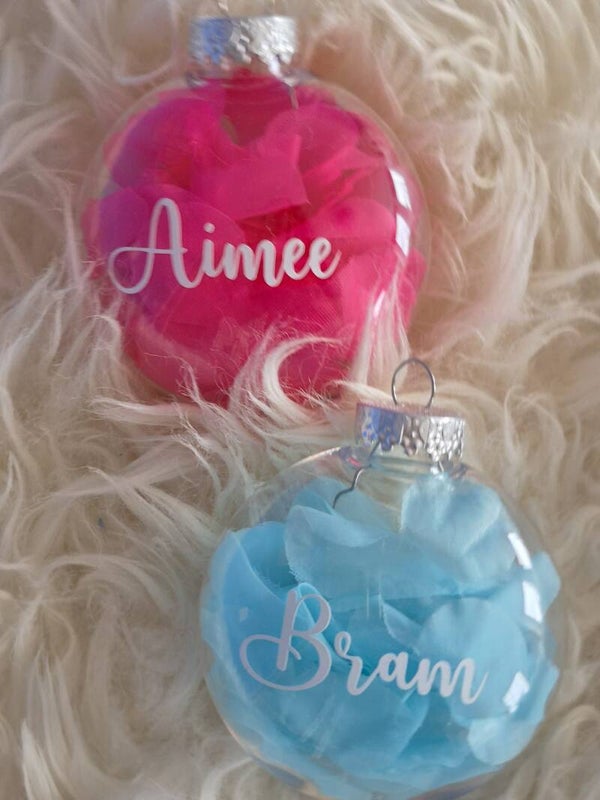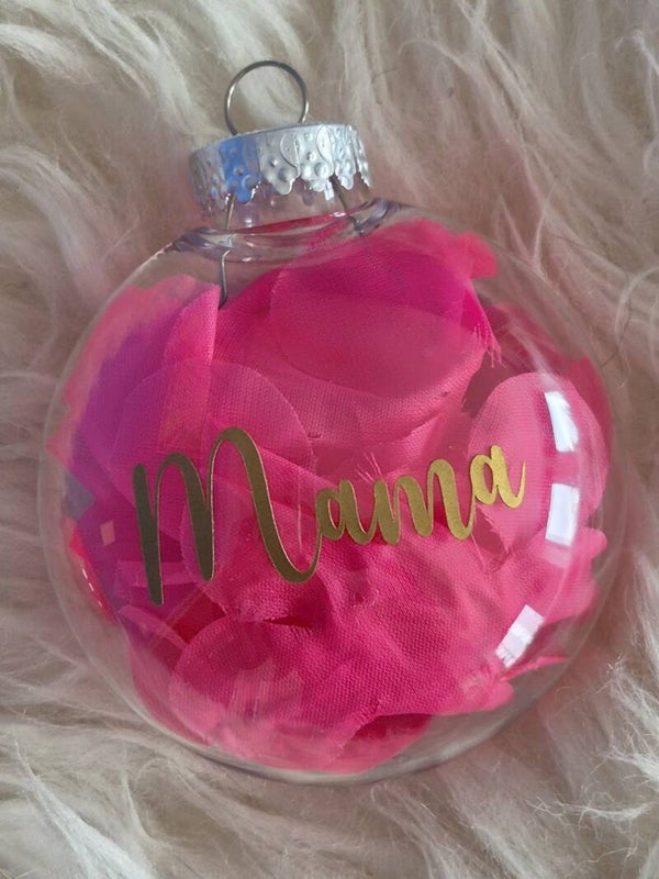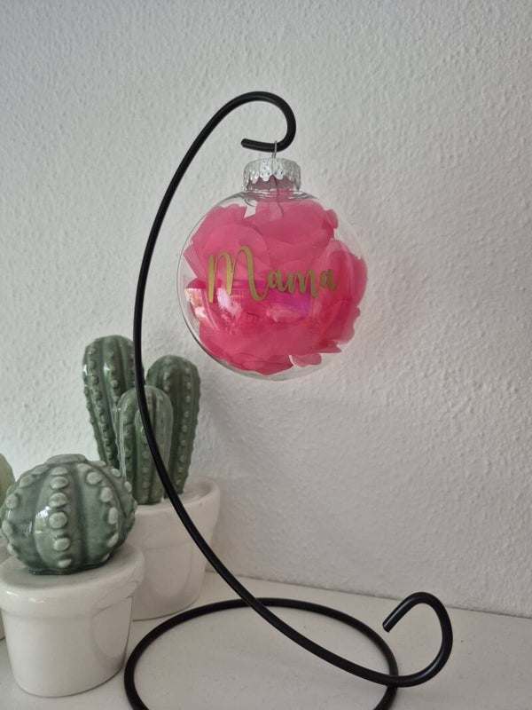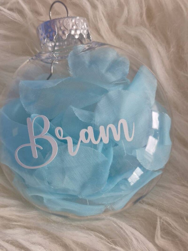 🌸 Gevuld met (kunst) bloemblaadjes in roze of blauw, en afgewerkt met een naam of tekst in jouw favoriete kleur: zilver, goud, wit of zwart.