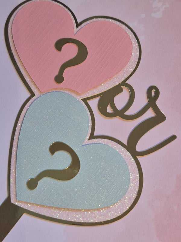 Maak jouw gender reveal extra bijzonder met deze unieke Pink or Blue taarttopper. Twee hartjes – één roze, één blauw – met een speelse vraagteken en sierlijke “or” ertussen. Een topper die nieuwsgierigheid opwekt én de taart laat stralen!