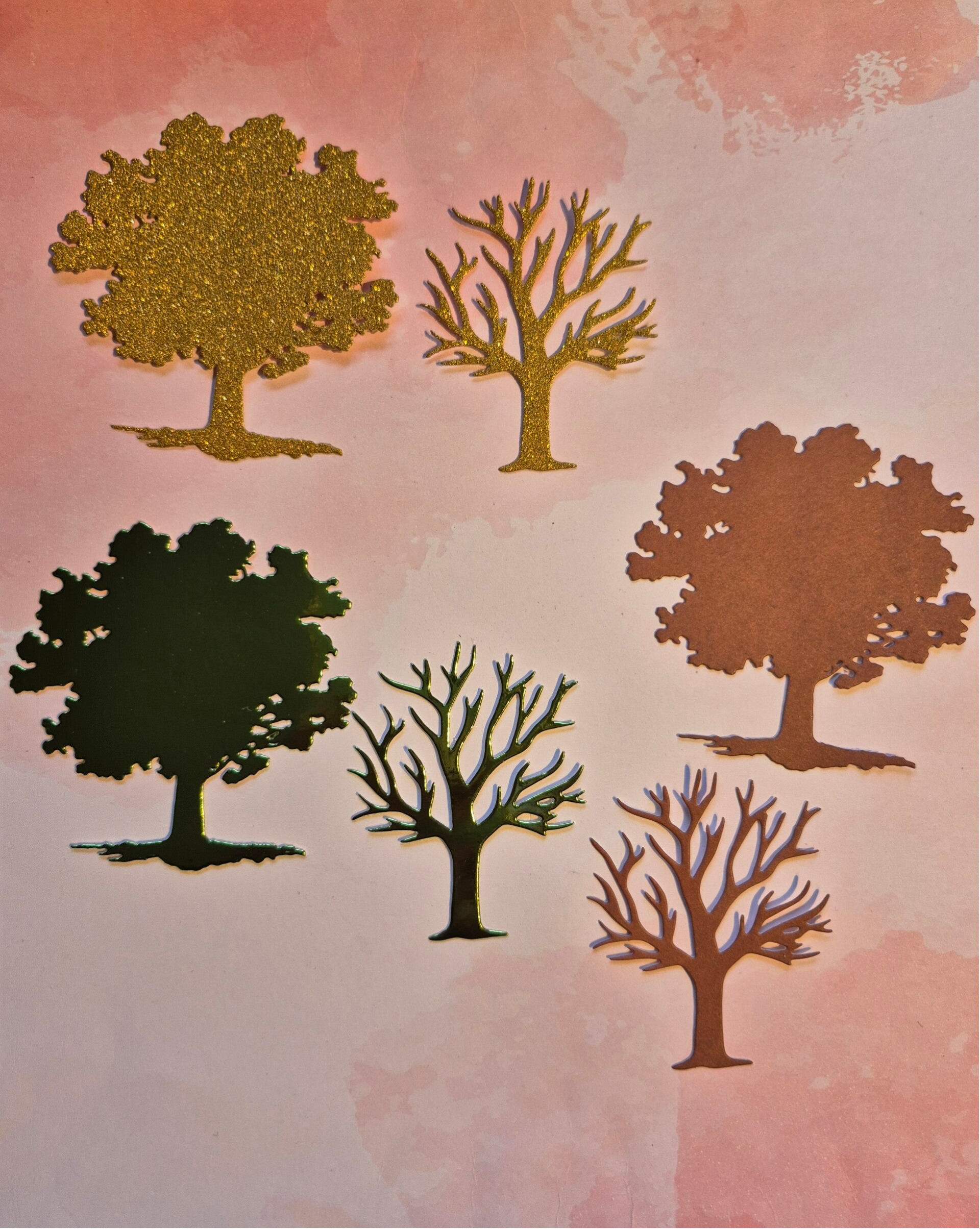 Breng een vleugje natuur naar je taarten, cupcakes of sweets met deze stijlvolle bomen set. Elke set bestaat uit twee contrasterende vormen: één boom vol bladeren en één boom met een strak, kaal silhouet. Perfect voor bos-, herfst- of dierenfeestjes en elke sweet table met een natuurlijke uitstraling.